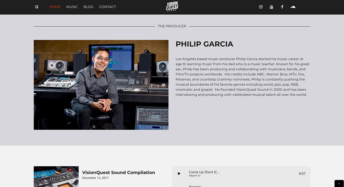 Logo, Branding, and Web development project completed for Vision Quest to showcase their future music endeavors.
